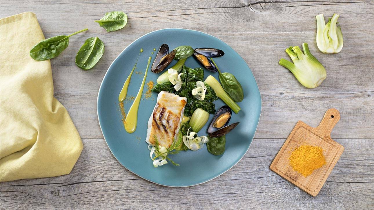 Cabillaud, fenouil, crème de moules et pousses d’épinards