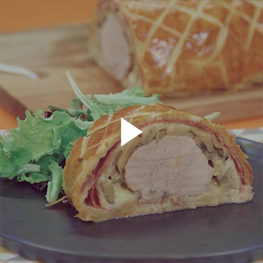 5. Déposez le filet mignon par dessus et repliez les 2 côtés de la pâte feuilletée sur les extrémités du filet.