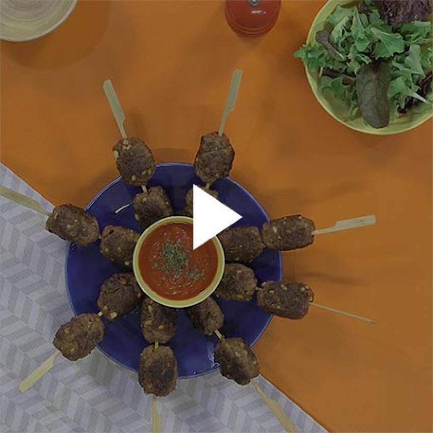 5. Insérez un bâtonnet à l’intérieur de chaque kefta.